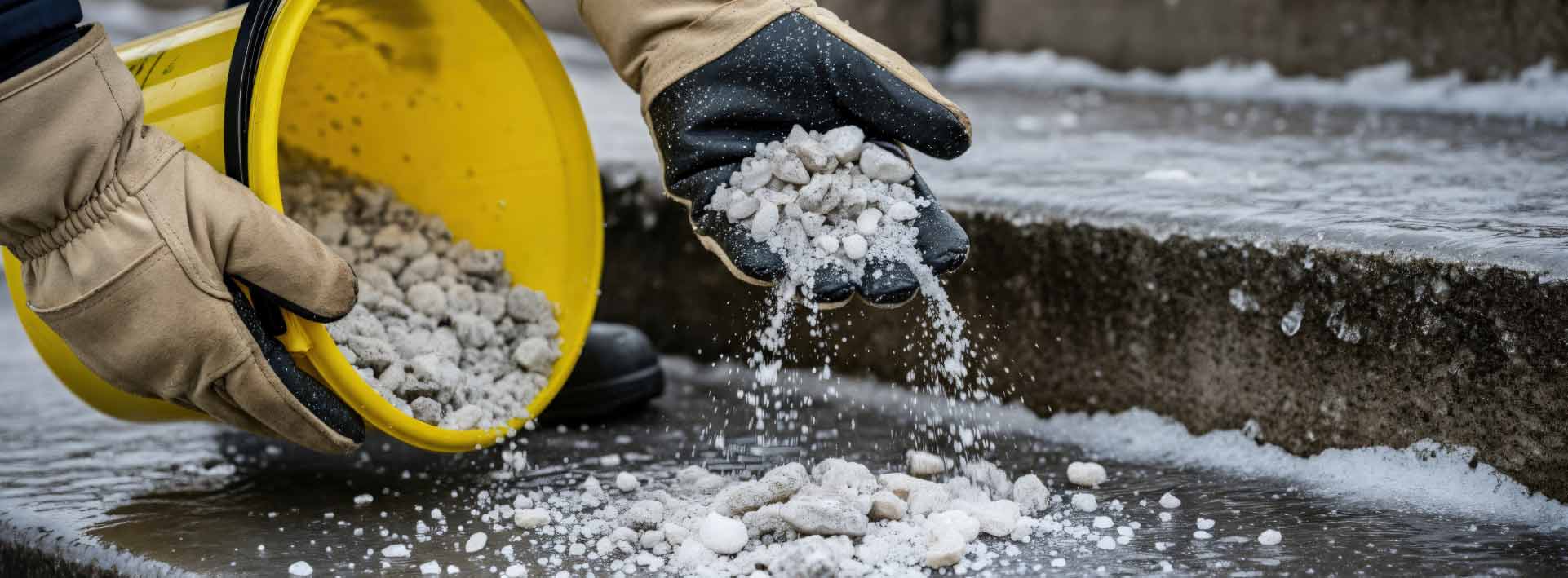 We use industrial-grade rock salt as our baseline, which is designed to quickly and effectively combat all forms of ice. We can supplement that with chemicals and sprays where needed, too.